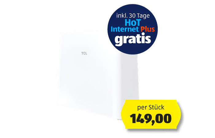 Ob Home Office, Streaming oder Surfen: Mit HoT sind Sie sofort online, ohne Technikertermin! Der HoT Router TCL HH515LM ist in allen HOFER Filialen erhältlich und liefert zuverlässige Verbindungen im modernen 5G- sowie 4G-Netz. Jetzt ohne Risiko testen: 30 Tage HoT Internet Plus sind kostenlos inkludiert!